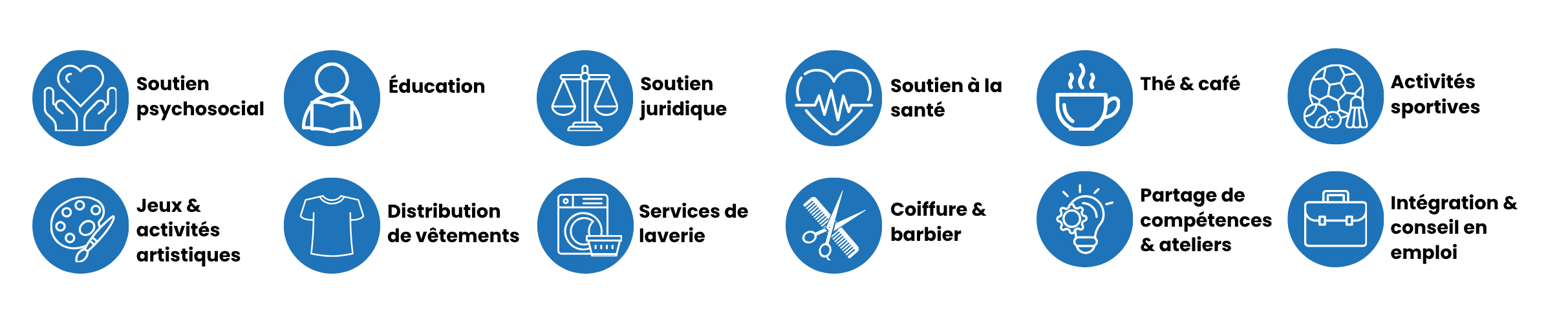Soutien psychosocial - Cours d’anglais - Sport - Jeux et activités artistiques