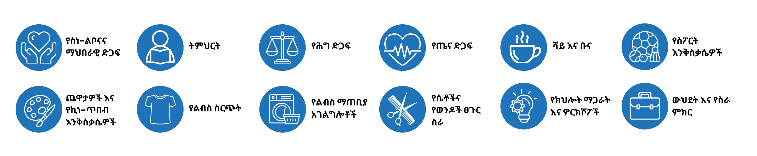 የክህሎት ማጋራት - ዎርክሾፖች - የሴቶችና የወንዶች ፀጉር ስራ - የልብስ ማጠቢያ አገልግሎት